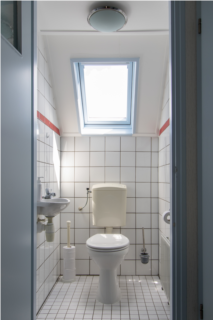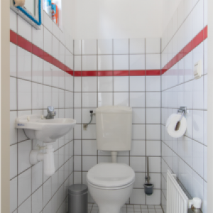 De ruime badkamer op de benedenverdieping bestaat uit een douchehoek en een wasbak. De douchehoek is voorzien van een stortdouche en een losse handdouche. Voor droge, warme handdoeken in het stookseizoen is de handdoekradiator wel fijn. Naast de badkamer is er een toilet met wasbakje.