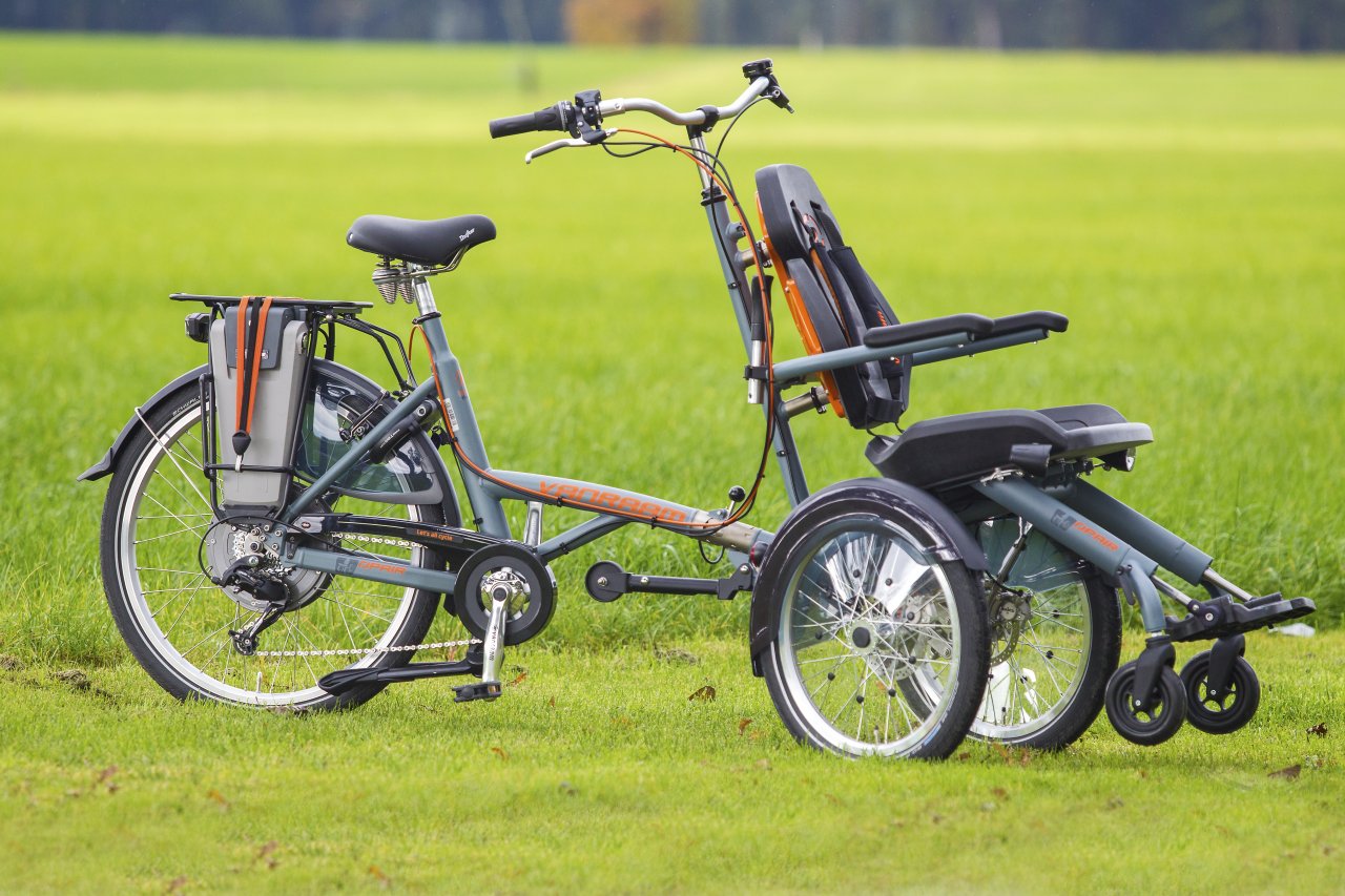 De OPair is een rolstoelfiets waarmee je een rolstoelgebruiker kunt vervoeren. Aan de voorzijde van de fiets is een zitting voor de rolstoelgebruiker/passagier gemonteerd. De bestuurder heeft vanaf de achterzijde een goed overzicht op de weg en toezicht op de passagier. Het voorste gedeelte is eenvoudig los te koppelen van het fietsgedeelte, zodat dit op locatie als rolstoel gebruikt kan worden. De licht schuinstaande voorwielen geven de fiets extra rijcomfort en stabiliteit. De OPair rolstoelfiets heeft een modern design.